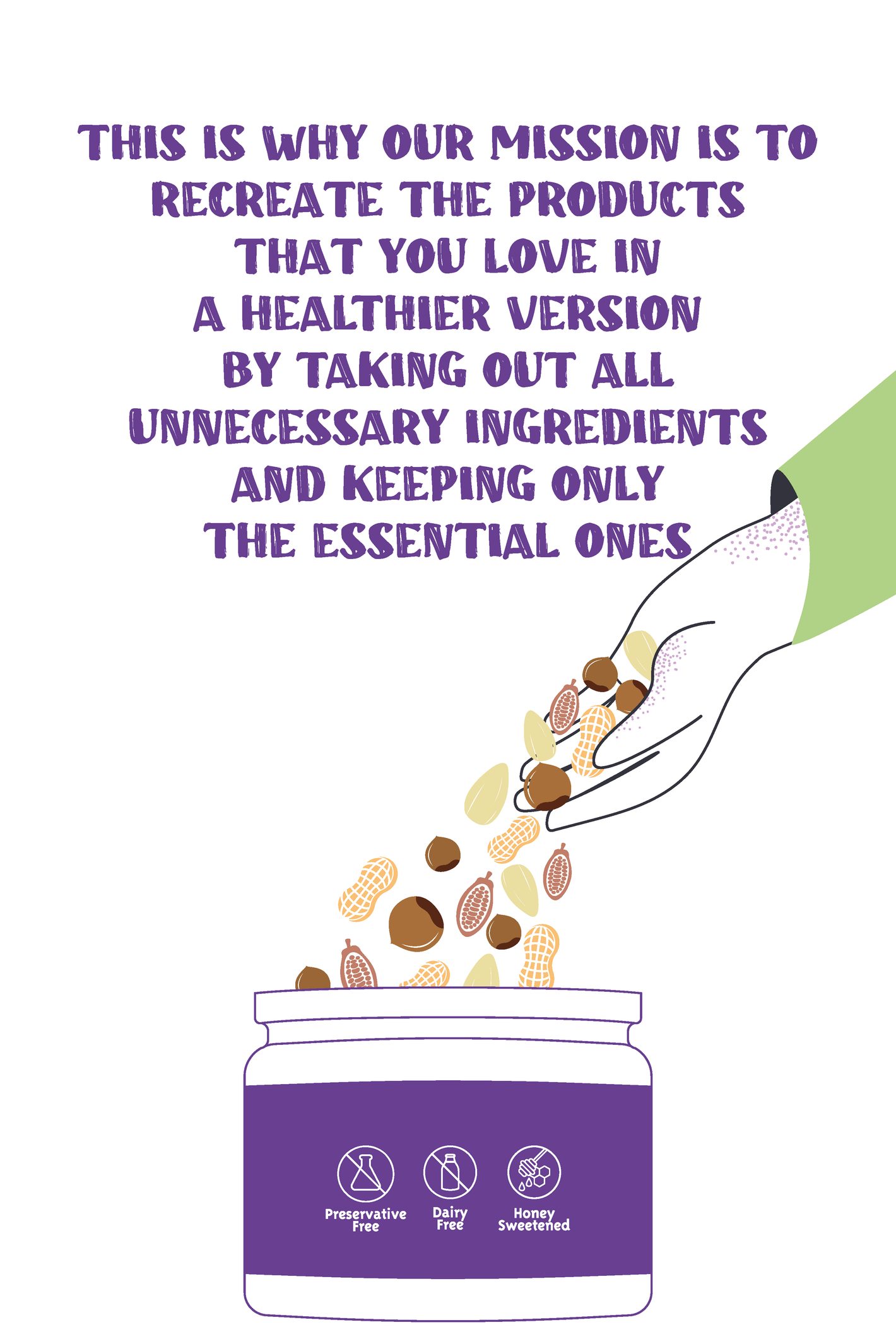 بدأ الأمر كله بالبحث عن أطعمة صحية مصنوعة من مكونات طبيعية. كانت خياراتنا محدودة، لذا قررنا أن نصنع حظنا بأنفسنا، وهنا ولدت Spreadly.